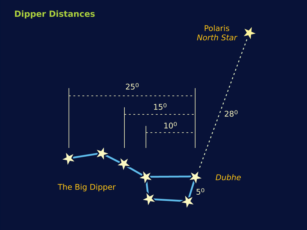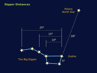 Everyone's hands are slightly different, so you might want to practice and calibrate your own hand measurements using the Big Dipper.