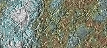 Europa's surface is a bright, smooth layer of frozen water, and fractures in the ice are visible everywhere, just the sort of structures seen in sea ice on Earth.